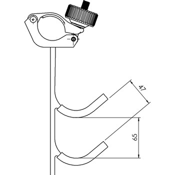 単管パイプに固定して、ホースやキャプタイヤなどを掛け、足元の安全性を確保します。ホース・キャプタイヤなどを綺麗に配列して吊ることができます。