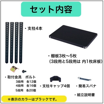 ワンボルトタイプのスチールラックです。ボルトはL型支柱タイプの1/2で完成、ネジ締め作業が半減します。頑丈に設計されていますので、長期間の使用が可能となっています。カラーは白と黒がございます。(CLE6276-3は黒のみ)