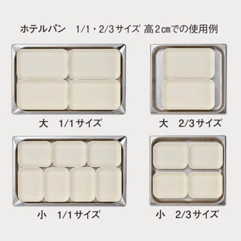 一般的なホテルパンにぴったり並べられるサイズ展開となっております。盛り付けての再加熱等にもお使いいただけます。