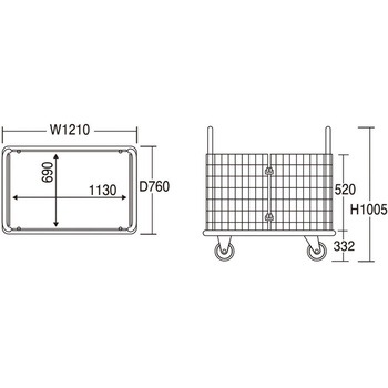 上蓋付き金網台車・観音扉型・空気入りタイヤ・フットブレーキなし