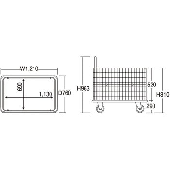 上蓋付き金網台車・観音扉型・空気入りタイヤ・フットブレーキなし