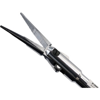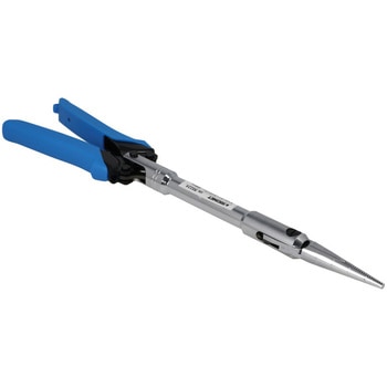 先端部のみが開閉する特殊機構を採用しており、限られたスペースでもアクセスが可能です。一般的なロングノーズプライヤーと比較してジョーを長く設計しているため、より狭く深い場所でも先端部が確実に届き、作業性を向上させています。