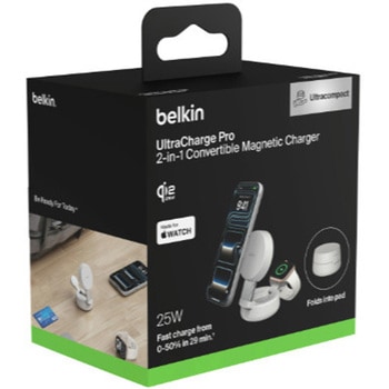 最大25Wで高速充電でき、スマートフォンとApple Watchを磁気で正確に位置合わせ可能