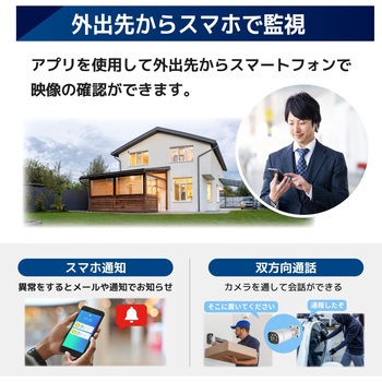 用途工場・事務所・倉庫・店舗・駐車場の侵入禁止エリアや厳重警戒エリアで仕様カメラサイズ:約70×60×105mm(本体のみ)、約300g(スタンド含む)、カメラ接続台数:8台(最大8台)、カメラ画素:5M:約500万画素電源カメラ:PoE給電、モニター:DC12V/1A(ACアダプター使用)、DC12V/2A(ACアダプター使用)最大解像度モニター:1920×1080pixel表示色モニター:1.677万色動作環境カメラ:温度-10℃~50℃※但し、結露なきこと、モニター:温度:0~50℃、湿度:10~80% ※但し、結露なきこと、レコーダー:温度 0℃~40℃ ※但し、結露なきこと出力信号100BASE-T(PoE)モニターサイズ15.6inch、約375×300×180mm(スタンド含む)、約1.0kgハードディスク内蔵型3.5INCH 8TB内容量1セット