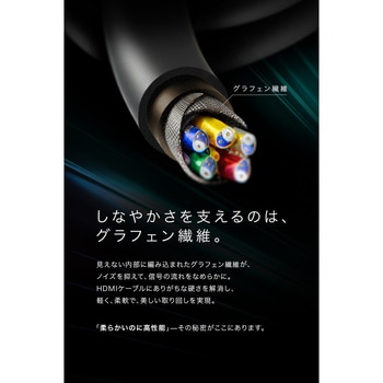 HDMIケーブルのイメージを覆す、しなやかで癖がつきにくく、たるまず収まりよく、片付けも簡単な製品です。シリコン被膜とケーブルに内蔵したマグネットが新しい使い方を提案します。