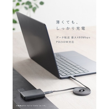 Mate Flat Spiral Cable CtoC 1.5m ライトブラック