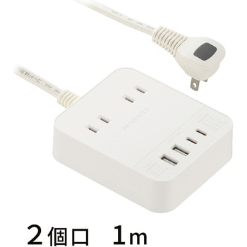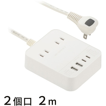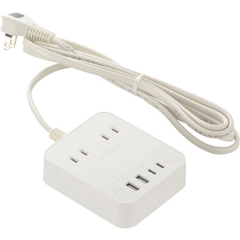 スマートフォンや家電の電源を1台でまとめて確保できる電源タップです。USB Type-CポートはPD対応で最大30Wの急速充電が可能です。USB Type-C×2口、Type-A×2口を搭載し、複数機器の同時充電に対応します。AC出力は合計1400Wまで対応しています。耐トラッキング絶縁カバー付きLプラグと二重被ふくコードで、安全性と配線性を高めています。