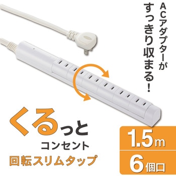 独立回転コンセントを採用し、ACアダプターを干渉しにくく使用できます。各コンセントが左右90°回転し、上・左・右の3方向から差し込みできます。雷軽減素子を内蔵し、雷サージによる機器へのダメージを軽減します。L型プラグを採用し、壁に沿ってすっきり配線できます。耐熱性ユリア樹脂を使用したプラグで、トラッキング火災を防止します。