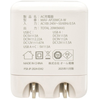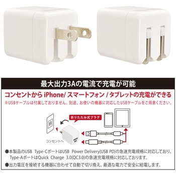 家庭用コンセントからUSB機器を2台同時に充電できるAC充電器です。