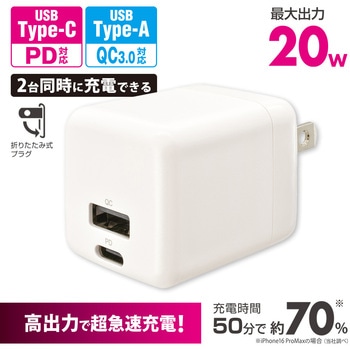 USB Type-CポートはUSB Power Deliveryに対応し、最大20Wの急速充電が可能です。