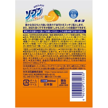 豊かな泡立ちと力強い洗浄力で油汚れをスッキリ落とします。泡切れが良くすすぎが簡単です。さわやかなオレンジの香り。オレンジオイル配合。スポンジ除菌。