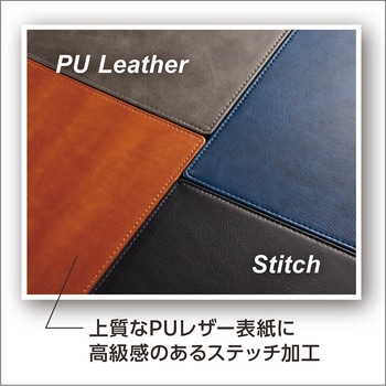 上質なPUレザー表紙に高級感のあるステッチ加工を施しています。