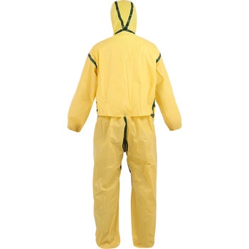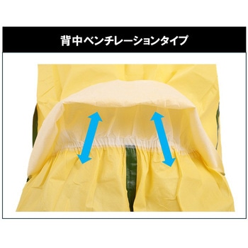 特殊防護フィルムとポリプロピレンの複合生地を使用し軽量且つ柔軟な素材を採用したChemMax1のつなぎタイプになります。液体化学物質の飛散が懸念される現場に適しております。背中部分の上部と両脇を密閉し、下部に開いたオーバーラップフラップを採用することで、衣服内の蒸れを軽減します。