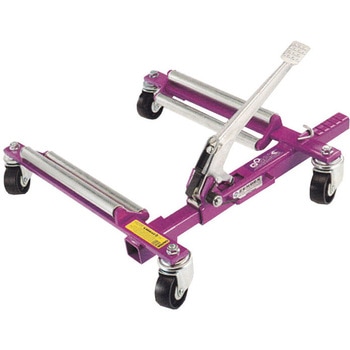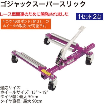 レース車関連のために開発されました。4つで4500ポンド(約2t)のホイールの取扱いが可能です。・空気、オイル、電気無しで簡単にジャック&ゴー・前後、左右、回転自由自在・車両をわずかな労力で移動・保管・配置