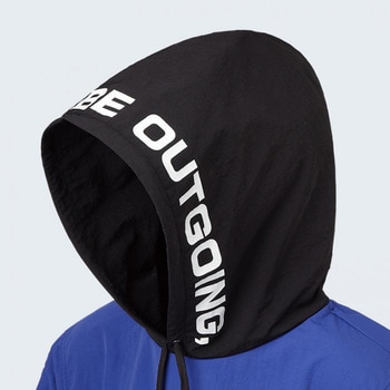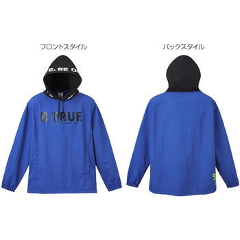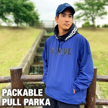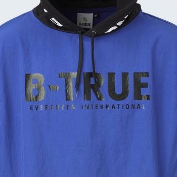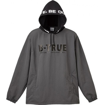 【ビッグシルエット】ゆったりとした着心地で動きやすい。【フロントデザイン】胸には「B-TRUE」、フードには「BE ACTIVE,BE OUTGOING,」の文字をインパクトある大きなプリントであしらいました。【バックデザイン】バック右裾にはイメージキャラクターの「トゥルービー」をプリント。【パッカブル機能】左ポケットを裏返してウェアを収納することができる、携帯に便利なパッカブル機能。【強撥水加工】水が染み込みにくく快適に着用できる、強撥水加工生地を採用。