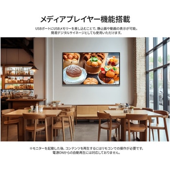 55インチのVAパネルを搭載し、4K(3840×2160)解像度に対応した大型液晶モニターです。4000?:1の高コントラスト比は、より黒をくっきりと表現することが可能、写真や動画を色鮮やかに映し出します。HDR?(ハイダイナミックレンジ)は、明るい部分も暗い部分もくっきり表現し、リアルに迫った深みのある映像を演出します。?HDCP?2.2?対応。USB?ポートを使用して簡易デジタルサイネージとしてもご利用できます。USB?メモリを差すだけで、簡単に画像や動画を表示できます。※モニターを起動した後、コンテンツを再生するにはリモコンでの操作が必要です。電源?ON?からの自動再生には対応しておりません。インターフェイスは、?HDMI 2.0×3を搭載。また、ビデオ/音声入力端子×1、コンポーネント入力端子×1および、オプティカル音声出力端子×1を搭載。200×200mm?の?VESA?マウントに対応。?10W×2のスピーカーを内蔵します。便利なリモコンを同梱。?USB?メモリ再生、メニュー操作、音量調整や入力切替などの操作を行えます。本製品には、2年間のメーカー保証が付きます。なお、3年保証モデル「JN-V55U-M-H3」および5年保証モデル「JN-V55U-M-H5」も同時に発売となります。