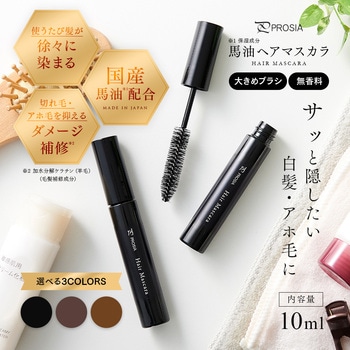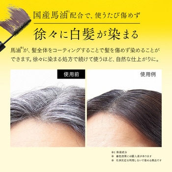 お出かけ前に気になる白髪を手軽にサッと隠せる、国産馬油配合(保湿成分)のヘアマスカラです。大きめのブラシを採用し、生え際や分け目などにも塗りやすい白髪隠しです。使うたびに徐々に染まり、重ねて数回塗布することで自然な仕上がりに着色します。頭頂部にぴょんぴょん飛び出るアホ毛対策にも。ポーチに入れて持ち運びできるので、外出先で白髪が気になった時にも便利です。髪色に合わせてナチュラルブラック・ダークブラウン・ライトブラウンの3色から選べます。シリコン、ジアミン系染料、酸化剤、鉱物油不使用。
