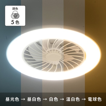 照明と送風を1台でまかなえる、ファン付きLEDシーリングライトです。正回転・逆回転の切替により、季節を問わず快適に使用できます。調光5段階・調色5段階に加え、3つの照明モードを搭載しています。DCモーター採用で、静音性と省エネ性に配慮しています。リモコン操作で照明とファンをそれぞれ個別に制御できます。