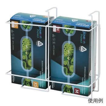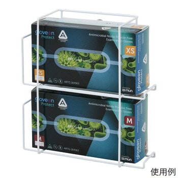マグネットで、スチールなど磁性体のキャビネットやワゴン等の平面部に張り付けることができます。化粧箱の縦入れにも横入れにも対応します。手袋やマスク、エプロン(袖なし)などの化粧箱を収納するホルダーです。