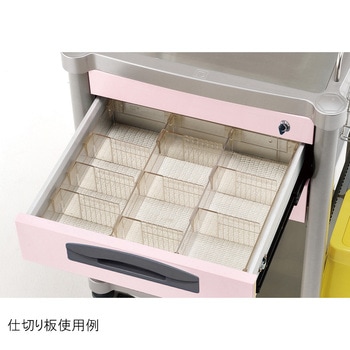 仕様4段引出し Wレール付属品ダストボックス×2個・ワイヤーバスケット×1個・仕切板セット×1式材質天板/ABS樹脂・ステンレス、引出し・支柱/アルミニウム、側板/アルミ複合板、IVポール/ステンレス質量(kg)50キャスター(mm)Φ100エラストマー製(静音型・2輪ダブルロックタイプ)耐荷重(kg)引出し/50、全体/200天板寸法(mm)560×475、補助:360×350寸法(幅W×奥行D×高さH)(mm)560×475×1173~1725天板高さH(mm)900アズワン品番8-9454-32引出し有効内寸法(mm)398×360×97(1~3段目)・398×360×240(4段目)内容量1台