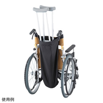 患者の松葉杖を車いすで持ち運べます。患者が車いすを利用する際に、松葉杖を保管しておくためのホルダーです。面ファスナー付きのベルトを使って車いすに取り付けます。