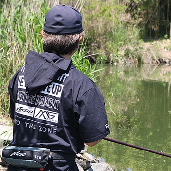 【ドライ生地】吸汗性・速乾性に優れた、なめらかで肌触りのよいドライ生地。透け感のない厚手タイプを採用。【フード】頭まわりの日焼け防止に効果的なフード付き。【フロントプリント】左胸部にMS-modeのMSロゴをプリント。【バックプリント】バックには清水盛三のフェイバリットフレーズ&ブランドロゴをプリント。