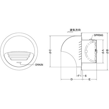 外壁用ステンレス製換気口 バイパスフード 薄型 左右吹出し 防火ダンパー付