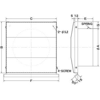 外壁用ステンレス製換気口 フラットカバー付換気口 角金網型10メッシュ 防火ダンパー付