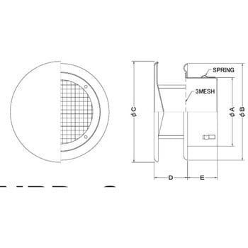 外壁用ステンレス製換気口 フラットカバー付換気口 大口径 金網型3メッシュ