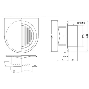 外壁用ステンレス製換気口 セルフード 同芯ガラリ型 逆風防止ダンパー付
