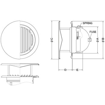 外壁用ステンレス製換気口 フラットカバー付換気口 ガラリ型 防火ダンパー付