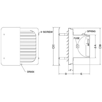 外壁用ステンレス製換気口 フラットカバー付換気口 角ガラリ型 防火ダンパー付