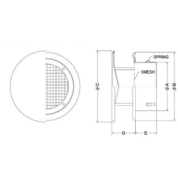 外壁用ステンレス製換気口 フラットカバー付換気口 大口径 金網型3メッシュ