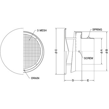 外壁用ステンレス製換気口 フラットカバー付換気口 大口径 金網型3メッシュ