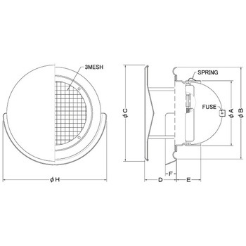 外壁用ステンレス製換気口 フラットカバー付換気口 角金網型10メッシュ 防火ダンパー付
