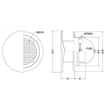 外壁用ステンレス製換気口 フラットカバー付換気口 金網型3メッシュ 防火ダンパー付