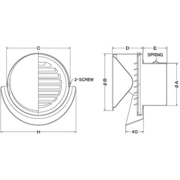 外壁用ステンレス製換気口 セルフード 同芯ガラリ型 逆風防止ダンパー付