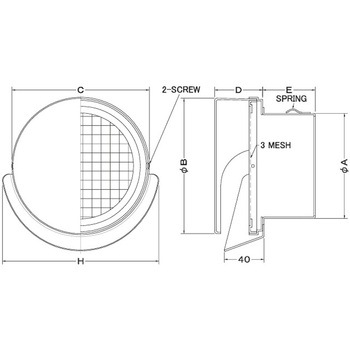 外壁用ステンレス製換気口 フラットカバー付換気口 大口径 金網型3メッシュ