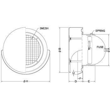 外壁用ステンレス製換気口 薄型フラットフード 金網型3メッシュ 水切り付 防火ダンパー付