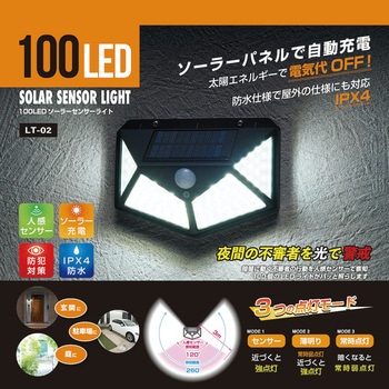 コンセント不要!ソーラー充電ができるソーラーセンサーライト。モーションセンサーを搭載し、人が近づくと点灯するので、玄関・倉庫やガレージなどの不審者対策にもおすすめ。3つの点灯モード(センサー・薄明り・常時点灯)で必要に応じた使い方が可能。
