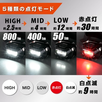 HIGH/MID/LOW/赤点灯/白点滅の5種類の点灯モードを搭載しています。