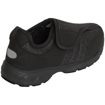 マジックテープ式で脱ぎ履きが楽ちん。カップインソールと内側かかと部にクッションがあり、履き心地は抜群です。外側かかと部に反射材もついているので、夜間の歩行も安心です。