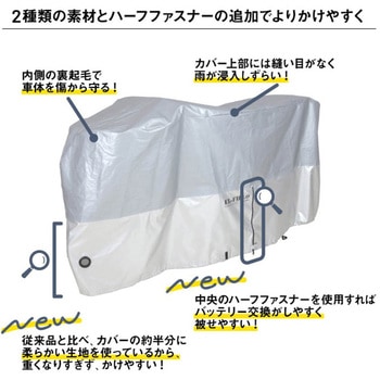 カバーの半分は柔らかい生地で、重くなりすぎないから車体にかけやすい。