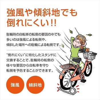 「倒れにくい」に特化したスタンドに交換することで、駐輪時の自転車の転倒を防ぎ破損のリスクを軽減できます。