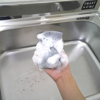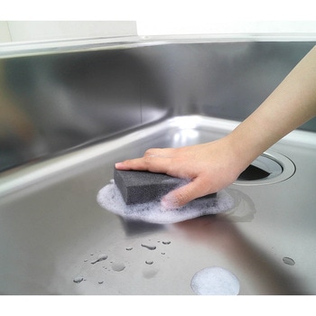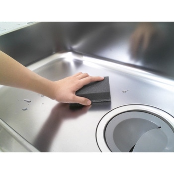 シンクの水あか・ヌメリに。キズつけにくく、汚れをスッキリ落とすシンク洗い用スポンジです。不織布はアルミニウム粉付きで、キズつけにくく水垢・ヌメリなどの汚れをしっかり落とします。洗剤含みのよいスポンジです。無溶剤接着品。日本製。