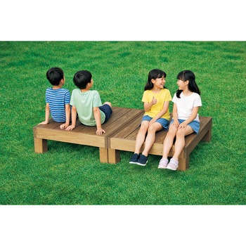 多用途に使えるスクエア型ベンチ。四方連結可能、接続用ボルト2本付