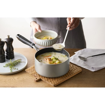 ダイヤモンドコーティングを使用した鍋です。摩耗に強く、コーティングが剥がれにくい。こびりつきにくさが長持ちする。お手入れが楽。キッチンのトレンド