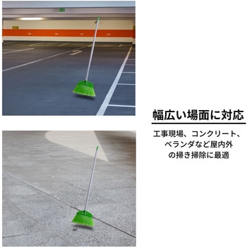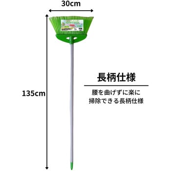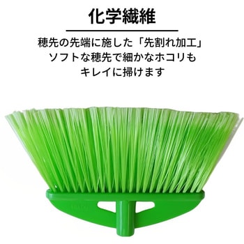 ワイドなブラシで広い面積を一度に掃除できます。長い柄なので掃除中の姿勢がとっても楽です。穂先に先割れ加工を施し細かなホコリも逃しません。腰が強く、水気に強い化繊ほうきです。