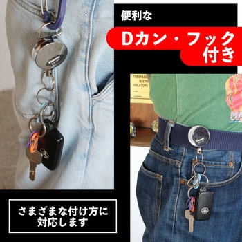 ベルトに装着して使用するワイヤーリール式落下防止グッズです。