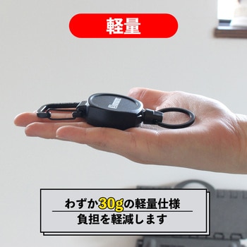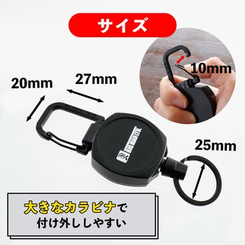 どこにでも引っ掛けやすいD型のカラビナを採用。角度も自由に変えられて使い勝手もよいです。